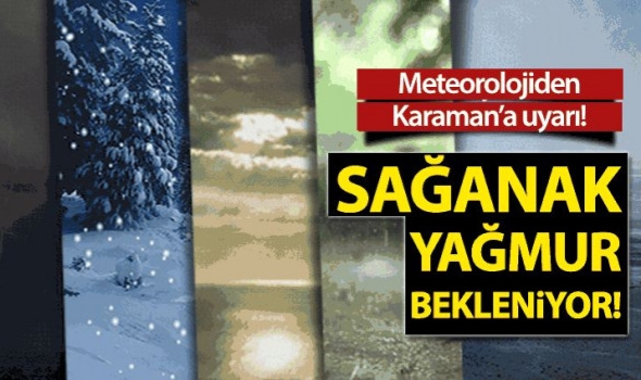 Meteoroloji Genel Müdürlüğü tarafından yapılan son değerlendirmelere göre: Kuzey, iç ve doğu kesimlerinin parçalı yer yer çok bulutlu, Marmara'nın kuzey ve batısı, Doğu Akdeniz, İç Anadolu'nun güney ve doğusu, Karadeniz, Doğu Anadolu, Bursa, Çankırı, Kırıkkale, Gaziantep, Kilis, Adıyaman, Siirt, Ankara'nın kuzey ve doğusu ile Antalya'nın doğusu yerel olmak üzere sağanak ve gök gürültülü sağanak yağışlı, diğer yerlerin az bulutlu ve açık geçeceği tahmin ediliyor. Yağışların Doğu Karadeniz ile Samsun, Ordu, Tokat, Sivas, Erzincan ile Tunceli çevrelerinde yerel olarak kuvvetli olması bekleniyor.17 İL İÇİN SARI KODLU UYARIMeteoroloji Genel Müdürlüğü Artvin, Bingöl, Bitlis, Erzurum, Giresun, Gümüşhane, Hakkari, Muş, Ordu, Rize, Samsun, Siirt, Trabzon, Van, Bayburt, Batman ve Şırnak için sarı kodlu uyarı yayınladı.KARAMAN'DA YAĞIŞ KAÇ GÜN SÜRECEK? Meteoroloji Genel Müdürlüğü 8.Bölge Müdürlüğü sıcaklıkların meysim normallerinin 4 ila 9 derece altında seyredeceğini, ani sıcaklık değişimleri ve kuvvetli meteorolojik hadiselere karşı Karaman'ı uyardı. Bugün ikindi saatlerinden itibaren Karaman'da gök gürültülü sağnak yağışın etkisini göstermesi bekleniyor.Meteoroloji Genel Müdürlüğü 8.Bölge Müdürlüğünden yapılan uyarıda şu ifadelere yer verildi: Hava Sıcaklıkları Düşüyor ve Yağışlı Hava Geliyor!