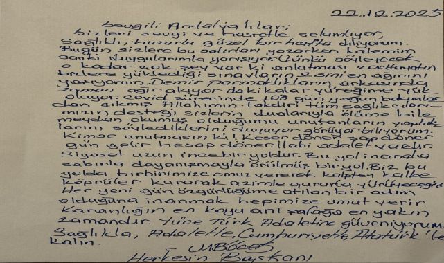 Muhittin Böcek, demir parmaklıkların arkasından sevenlerine seslendi. Hayatında yaşadığı zorluklara değinen Böcek, duygularını kaleme döktü.