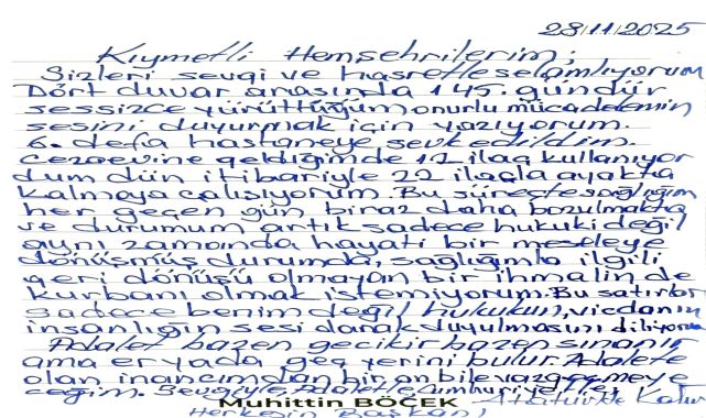 Muhittin Böcek'ten Onurlu Mücadele Vurgusu: 145 Günlük Sessiz Direniş ve Sağlık Durumu