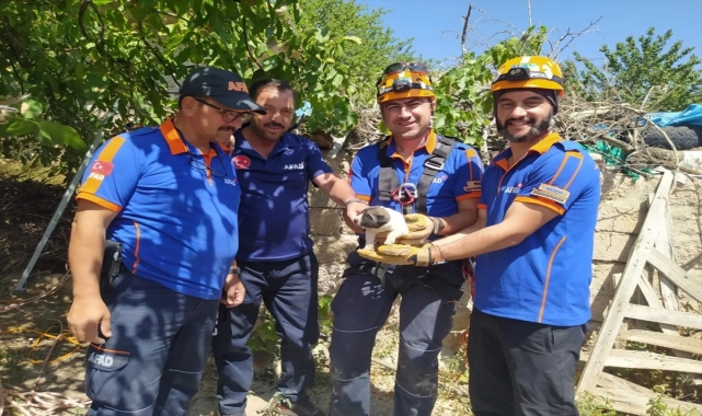 Niğde'de tarladaki su kuyusuna düşen yavru köpek, İl Afet ve Acil Durum (AFAD) Müdürlüğü ekiplerince kurtarıldı.Kayırlı beldesinde gezintiye çıkan B.T, yeni doğum yapmış bir köpeğin su kuyusu yanında beklediğini gördü.Kuyudan gelen sesler üzerine B.T, AFAD'dan yardım istedi.Ekipler, yaklaşık 18 metre derinliğindeki kuyuya inerek çıkarttığı yavru köpeği annesiyle buluşturdu.