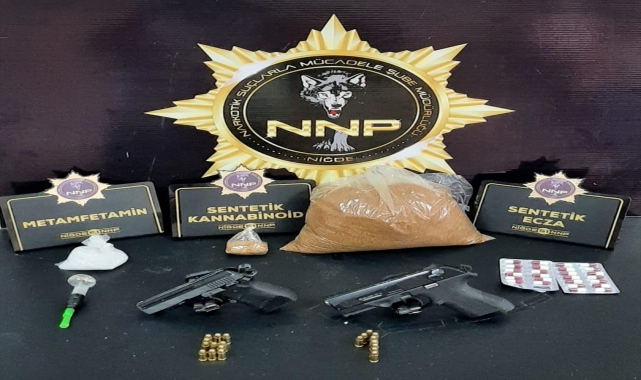 Zanlının çantasında yapılan aramada, 1 kilo 511 gram sentetik uyuşturucu, 63,50 gram metamfetamin, 26 sentetik hap, uyuşturucu kullanımı için aparat, 2 ruhsatsız tabanca ve 21 dolu fişek ele geçirildi.Gözaltına alınan şüpheli hakkında adli işlem başlatıldı.