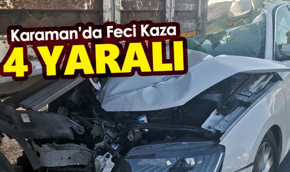 Karaman'da meydana gelen trafik kazasında i'i ağır, 4 kişi yaralandı.Alınan bilgiye göre, Murat Abdullah yönetimindeki 34 BSM 160 plakalı otomobil, Karaman-Konya kara yolu Kazımkarabekir ilçesi girişinde, emniyet şeridinde park halinde bulunan Fatih Y. idaresindeki 33 PY 826 plakalı çekiciye arkadan çarptı.Kazada otomobil sürücüsü ile araçtaki Semahat (64), Eslem Elif (12) ve Burak Kuzu (25) yaralandı.Karaman Eğitim ve Araştırma Hastanesine kaldırılan yaralılardan Kuzu'nun hayati tehlikesinin bulunduğu öğrenildi.