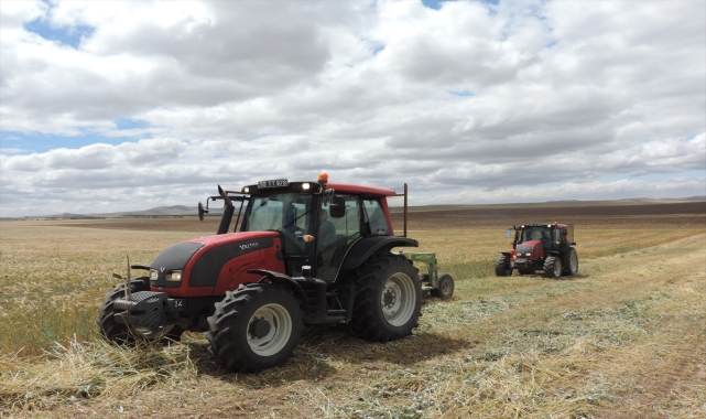 Sivas'ın Ulaş ilçesinde Kangal Akkaraman cinsi koyunların kışlık kaba yem ihtiyacının karşılanması amacıyla ekilen "hasıl fiğ" bitkisinin hasadı sürüyor.Tarım İşletmeleri Genel Müdürlüğüne bağlı Ulaş Tarım İşletmesi Müdürlüğünde yetiştirilen Kangal Akkaraman koyunlarının yem ihtiyacı için 5 bin 768 dekar alanda ekimi yapılan tritikale ve macar fiği karışımı hasıl fiğ bitkisinin hasadı yapılıyor.İşletmenin müdür vekili Mehmet Emin Bodur, hasat tamamlandıktan sonra yaklaşık 2 bin ton kuru ot elde edileceğini dile getirerek, 20 bin baş koyunun kaba yem ihtiyacının karşılanacağını kaydetti.