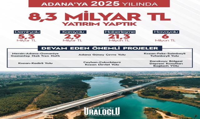 Ulaştırma ve Altyapı Bakanı Abdulkadir Uraloğlu, 2025 yılı içerisinde Adana (01), Adıyaman (02), Afyonkarahisar (03) ve Ağrı (04) illerinde tamamlanan ulaştırma projeleri hakkında bilgi verdi. Bakan, çalışmaları sosyal medya hesabından duyurdu.