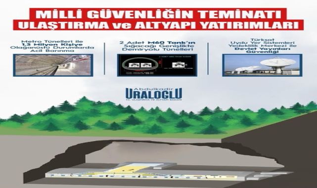 Ulaştırma ve Haberleşme Bakanı Abdulkadir Uraloğlu, Türkiye'nin ulaşım ve haberleşme altyapısının milli güvenliğin stratejik teminatı olduğunu belirtti. Uraloğlu, Türkiye genelinde bulunan 687 kilometrelik metro tünellerinin, olağanüstü durumlarda 1 milyon 374 bin vatandaşa acil barınma imkânı sunabilecek kapasitede olduğunu vurguladı. Özellikle İstanbul'da 500 kilometreyi aşan metro tünellerinin, güçlü bir sığınak altyapısı oluşturduğuna dikkat çekildi.