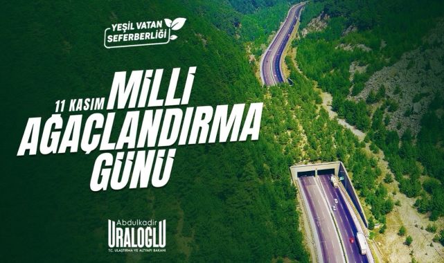 Ulaştırma ve Altyapı Bakanı Abdulkadir Uraloğlu, 11 Kasım Milli Ağaçlandırma Günü'nü kutlayarak, "Yeşil Vatan" ideali doğrultusunda ağaçlandırma çalışmalarının sürdüğünü bildirdi. Her fidanın geleceğe bırakılan bir umut olduğunu belirtti.