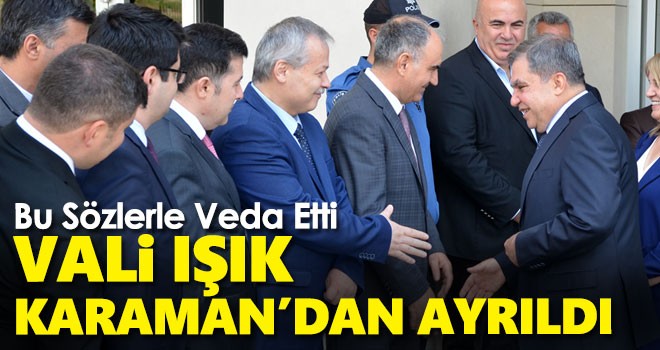 Kentte yaklaşık iki yıldır görevini yürüten Işık'ın tayini dolayısıyla Valilikte tören düzenlendi.Işık'ı, protokol üyeleri, valilik çalışanları ve birçok vatandaş uğurladı.Işık, konuşmasında, makamların gelip geçici olduğunu belirterek, "Burada tarafsız olarak adil şekilde hiç kimsenin güdümüne girmeden görev yapmayı kendime bir ilke edindim. İnşallah bu şekilde de görevimi tamamlayarak buradan huzur içinde ayrılacağıma inanıyorum demiştim. Allah'ıma şükürler olsun ki bu şekilde ayrılmak bana nasip oldu" diye konuştu.Karaman halkına teşekkür eden Işık, "Nerede olursam olayım mücadelem etkin şekilde sürecek. Zira namuslu, kamu malını koruyan kamu görevlileri benim gözüm kulağım olacak. Vali yardımcısı, kaymakam, daire amiri, belediye başkanları, oda başkanlarımız ve STK'larımızın temsilcileri varlıklarını hep yanımda hissettirdiler." ifadelerini kullandı.