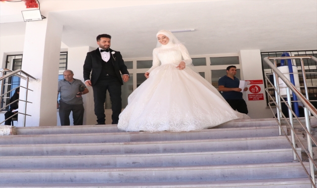 Yozgat'ta öğretmen adayı, düğünüyle aynı güne denk gelen mülakata gelinliğiyle katıldı.Sarıkaya ilçesinde yaşayan okul öncesi öğretmenliği mezunu Emine Bulut, düğününü yarıda bırakıp damat Sezer Bulut ile öğretmenlik mülakatı için Yozgat Ölçme Değerlendirme Merkezi'ne geldi. Öğretmen adayı gelin, mülakata gelinliğiyle girerken, damat Sezer Bulut da eşini yalnız bırakmadı.Bulut, mülakat sonrası gazetecilere, "Mülakat çok güzel geçti, çalışan ve komisyon üyeleri çok güler yüzlüydü, çok yardımcı oldular. Beni gelinlikle görünce çok şaşırdılar. Fotoğraf çektiler, benim için güzel bir anı oldu." dedi.Bulut, atanmayı beklediğini ifade ederek, "İnşallah gelinlik uğurlu olur, atanırım. Mesleğime başlamayı çok istiyorum." diye konuştu.Damat Sezer Bulut da "Düğünde bizi bekliyorlar. Hayırlısıyla düğünümüzü de bitireceğiz. Eşim inşallah atanır ve çifte mutluluk yaşarız." ifadelerini kullandı.