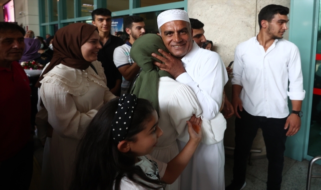 Başkentte, hac farizasını yerine getiren hacılar ile yakınlarının Esenboğa Havalimanı'ndaki buluşmasında duygusal anlar yaşandı.Suudi Arabistan'ın Cidde kentinden uçakla gelen hacılar, duygusal anların yaşandığı Esenboğa Havalimanı'nda, aileleri ve yakınları tarafından çiçeklerle karşılandı.- "Memleketimiz için bol bol dua ettik"Hacılardan Ramazan Koçak, hac ibadetini tamamlamaktan büyük mutluluk duyduğunu ve Türkiye'ye güzel duygularla döndüğünü söyledi.Hac ibadetinin herkese nasip olması için dua ettiğini söyleyen Koçak, "Bu sene hac ibadetimiz çok güzel geçti. Kutsal toprakları hep gözyaşlarıyla dolaştık. Cenabı Allah sizlere de nasip etsin. Memleketimiz için bol bol dua ettik. Rabbim kabul etsin inşallah." diye konuştu.Hac vazifesini yerine getirdiği için mutlu olduğunu aktaran Mehmet Karabulut da kendisini karşılamaya gelen torunlarıyla uzun süre kucaklaşıp hasret giderdi ve gözyaşlarını tutamadı.Hacılardan Süleyman Kalkan da selam getirdiklerini dile getirerek, "Rabbim ülkemize bereket, sağlık, huzur versin. Devletimize, milletimize zeval vermesin." dedi.İbadetini yerine getirmenin gururunu yaşadığını belirten Nerime Kalkan da hac farizasını yerine getirmenin herkese nasip olmasını diledi.
